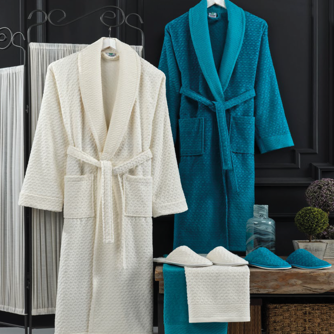 Kadife bornoz setleri, banyodan sonra sizi saran sıcaklık ve yumuşaklık hissiyle konforu yeniden tanımlıyor. Lüks kadife kumaşı sayesinde cilde nazik bir dokunuş sunarken, estetik tasarımıyla da banyonuza zarafet katıyor. Set içeriğinde bornozun yanı sıra uyumlu havlu ve terlik gibi tamamlayıcı parçalar da yer alabilir. Hem kendinizi hem de sevdiklerinizi şımartmak için ideal olan bu setler, özel günlerde harika bir hediye seçeneğidir. Evde spa keyfini yaşamak isteyenler için şıklık ve konforu bir araya getiriyor.